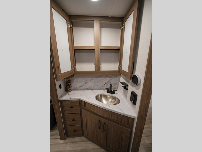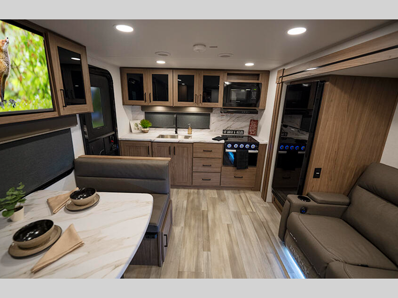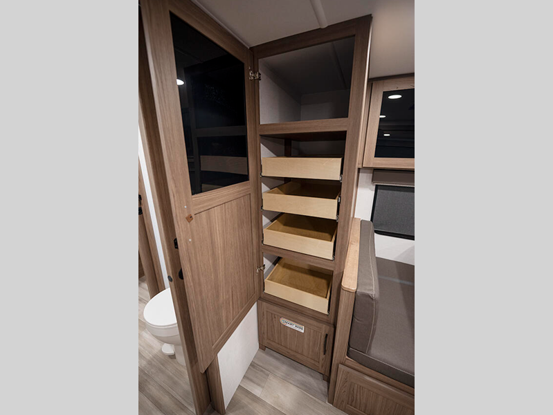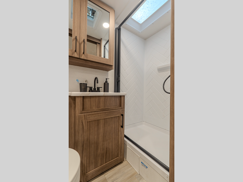 Exterior highlights include Step Above steps on all doors, Goodyear Endurance tires, exterior awning controls, and more. Inside, you'll enjoy fully functional oversized atrium windows, soft closet cabinet doors, and no carpet to make cleaning up easier than ever.