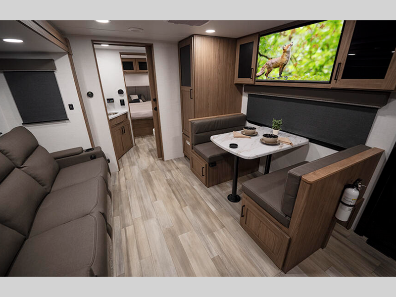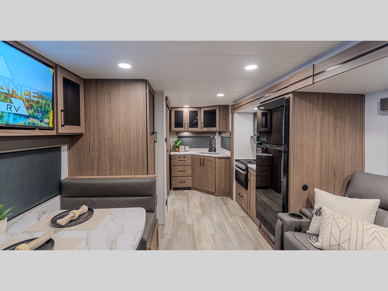 Sleeps 4 Slides 1 Length 26 ft 11 in Hitch Weight 563 lbs Dry Weight 5520 lbs Fresh Water Capacity 45 gals Grey Water Capacity 45 gals Black Water Capacity 45 gals Available Beds Queen Refrigerator Type 12V Refrigerator Size 10 cu ft Cooktop Burners 3 Shower Size 30" x 36" Number of Awnings 1 Water Heater Type On Demand Tankless AC BTU 15000 btu TV Info LR 40" Swivel TV Awning Info 19' Axle Count 2 Shower Type Standard Similar Floorplans