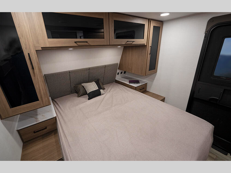 Sleeps 2 Slides 1 Length 23 ft 11 in Ext Height 10 ft 10 in Hitch Weight 568 lbs GVWR 7450 lbs Dry Weight 4992 lbs Fresh Water Capacity 45 gals Grey Water Capacity 45 gals Black Water Capacity 45 gals Available Beds Queen Refrigerator Type 12V Refrigerator Size 10 cu ft Cooktop Burners 3 Shower Size 32" Number of Awnings 1 Water Heater Type On Demand Tankless AC BTU 15000 btu Awning Info 15' Axle Count 2 Shower Type Radius Similar Floorplans