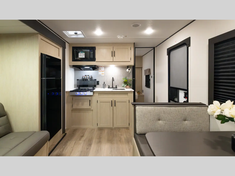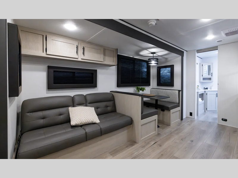 The enclosed underbelly will help protect against rock and debris as you travel to the campground, and the straight axle with electric breaks will help keep you unit secure. Inside, a tankless water heater will provide endless hot showers and pocket-bored and screwed cabinets will be useful for keeping everything organized. There are a few options that can be added to further customize your trailer, such as an optional power tongue jack and an optional 200W solar panel for off-grid capabilities.