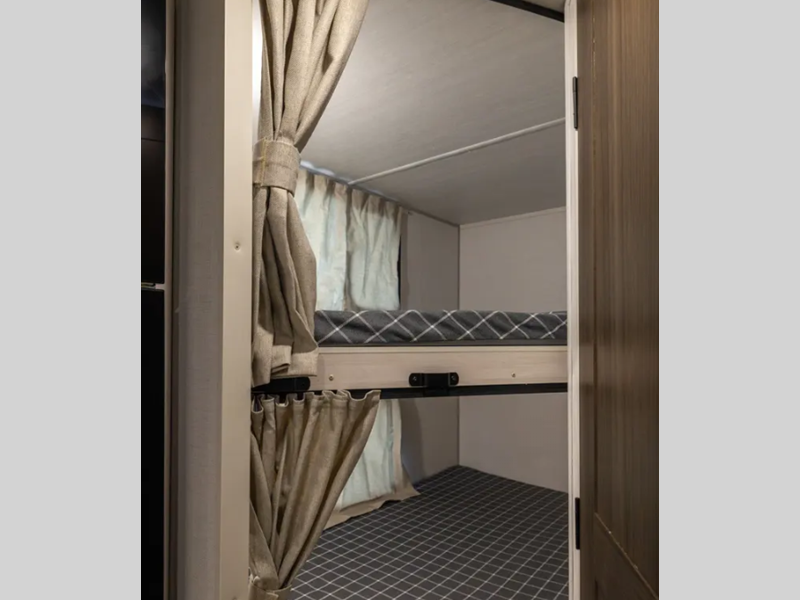 Sleeps 5 Slides 1 Length 23 ft 7 in Ext Width 7 ft 4 in Ext Height 10 ft 9 in Hitch Weight 408 lbs Dry Weight 3777 lbs Cargo Capacity 1831 lbs Fresh Water Capacity 30 gals Grey Water Capacity 30 gals Black Water Capacity 30 gals Number Of Bunks 2 Available Beds Queen Refrigerator Type 12V Black Glass Refrigerator Size 10 cu ft Convection Cooking Yes Cooktop Burners 2 Number of Awnings 1 Water Heater Type Tankless AC BTU 15000 btu TV Info LR HD TV Awning Info 15' Electric w/LED Light Strip Axle Count 1 Shower Type Standard Electrical Service 30 amp Similar Floorplans
